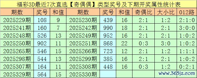 万东谈主王福彩3D第2025330期号码参考: