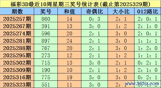 福彩3D第2025323期(上周星期三)奖号为551。其中奖号奇偶比为3:0,大小比为2:1,012路比为0:1:2。